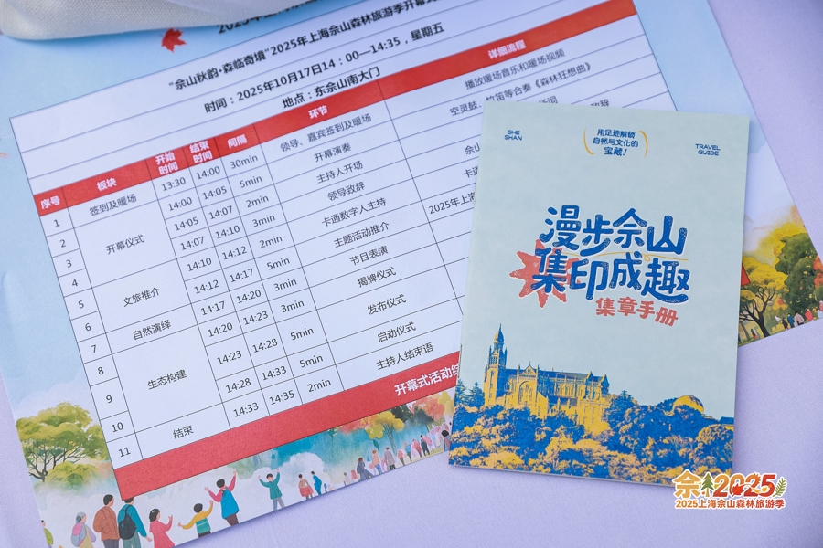 其二,佘山度假区管委会与上海体育大学科技园共同为“森呼吸・林间活力驿站”揭牌。该驿站将在四大园区布局10个健身平台,未来市民可在此参与八段锦、瑜伽、尊巴等运动,实现“在森林里健身,在健身中吸氧”的体验。开幕式上,《漫步佘山 集章成趣》集章手册同步发布。这本被誉为“佘山寻宝图”的手册,将度假区内各景点与酒店串联成完整游览动线,游客可在游览中打卡集章并享受优惠,为行程增添探索乐趣与纪念意义。