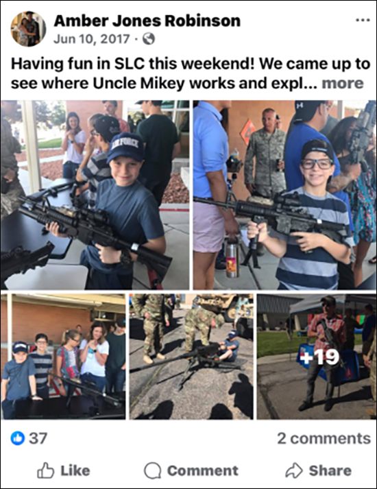 罗宾逊的父母是坚定的共和党支持者,属于典型的美国农村中产阶级家庭。其母亲热衷在社交平台分享全家野外露营、高空滑索的照片,还特别喜欢晒出罗宾逊和其弟弟们玩大枪的照片。而罗宾逊正是在这样的家庭环境中长大的。